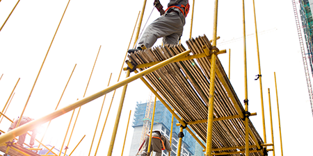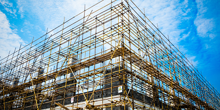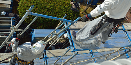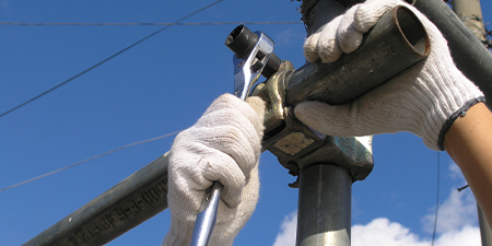 ビルや橋梁、倉庫や発電所など、様々な構造物の建設に必要となる、足場・安全設備を設置します。外壁の塗装や補修のための工事にも必要となります。当然足場の解体も含まれます。