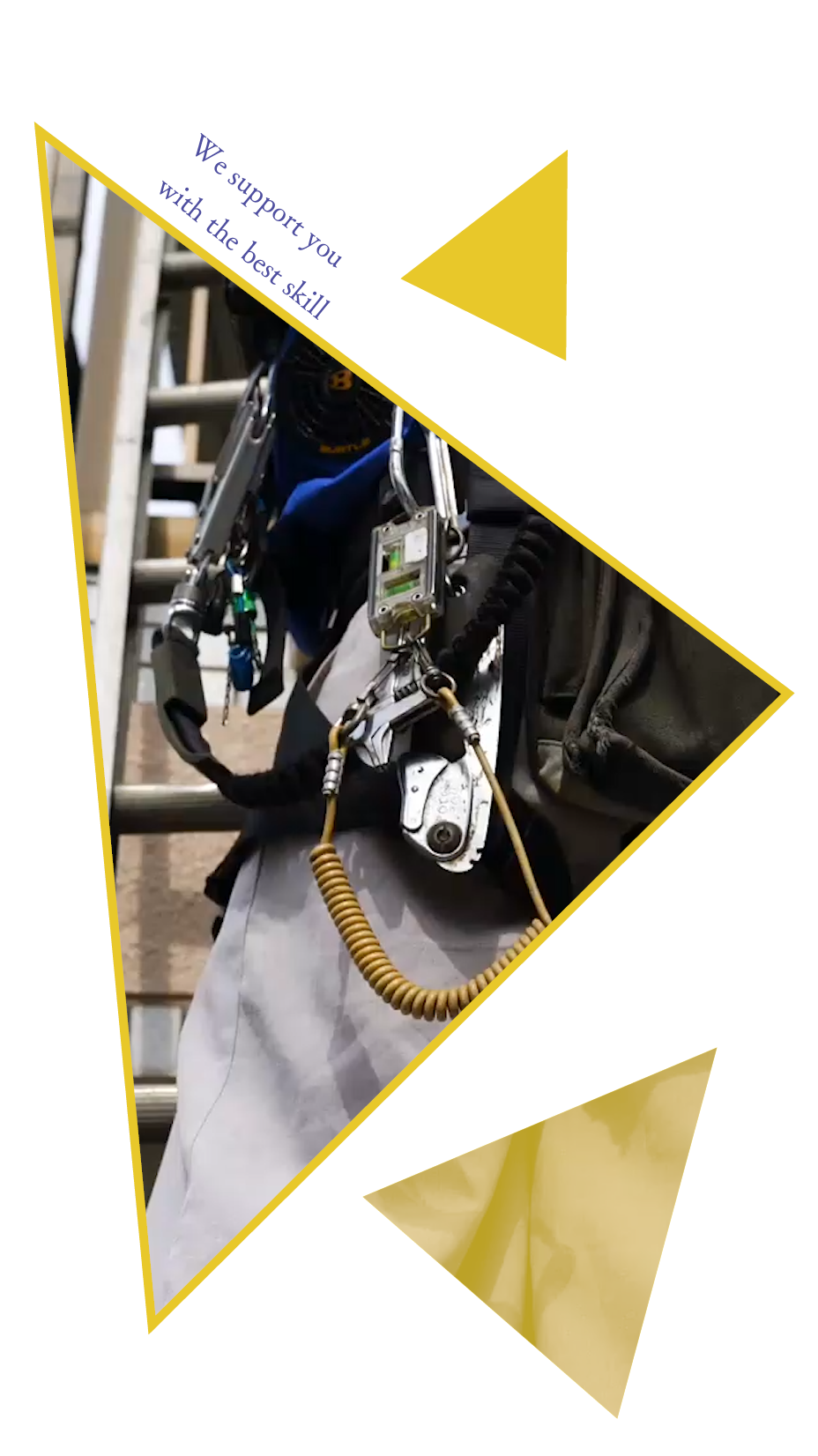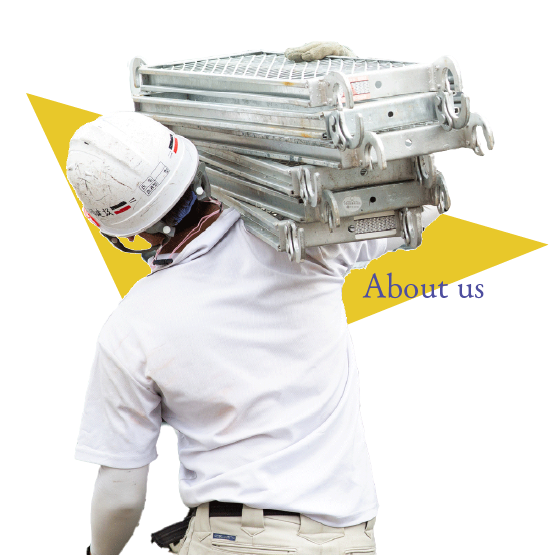ビルや橋梁、倉庫や発電所など、様々な構造物の建設に必要となる、足場・安全設備を設置します。外壁の塗装や補修のための工事にも必要となります。当然足場の解体も含まれます。